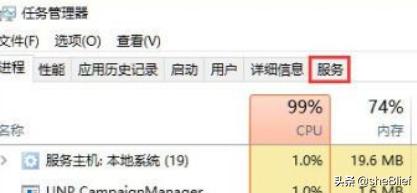 2、在打开的任务管理器窗口中,点击上面的“服务”选项卡。