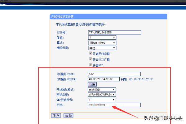 接着下一步就是 设置副路由器 新的无线名称与无线密码。我们就设置无线名称为” c924 “,记住这个名称(也可以任意设置其它的),然后就保存。