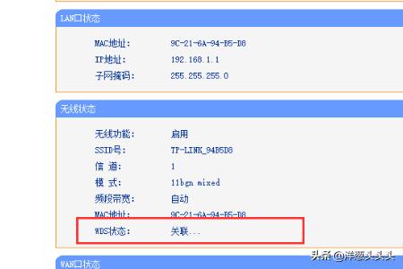7、回到路由器的运行状态查看,看到WDS状态为关联中,等待显示为成功,即为桥接成功