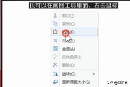 6、第三种方法是,按下截屏键PrtSc后,打开画图工具,右击鼠标,选择点击【粘贴】。也会出现上面第5步的全屏截图的效果。
