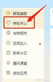 在qq空间左边的菜单中选择“特别关心”。