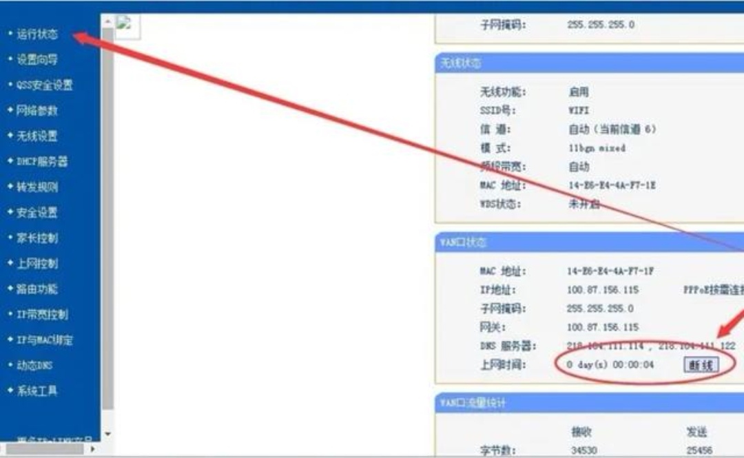 在选择运行状态,在上网时间处如果有断线选项,说明连接成功!
