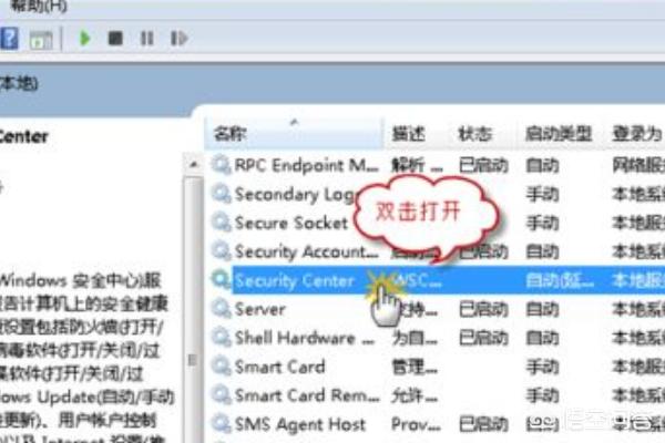 3、找到安全中心服务,然后双击它以打开服务属性