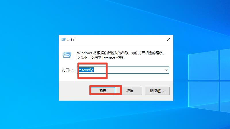 打开运行窗口输入msconfig后点击确定