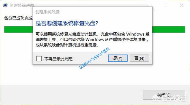 并且备份完成时还会弹出“是否要创建系统修复光盘”对话框。如图: