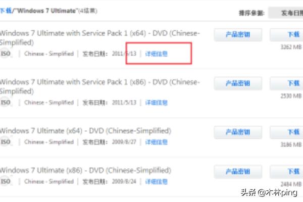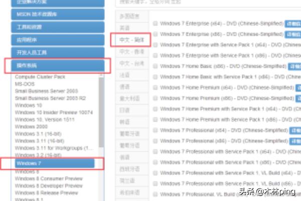 9、搜索:MSDN,我告诉你进入官网。找到::操作系统-Windows 7-中文简体-Windows 7 Ultimate with Service Pack 1 (x64) - DVD (Chinese-Simplified)。