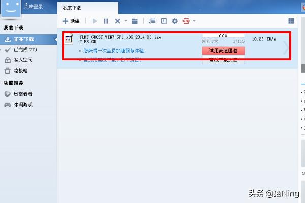 6、点击开始下载之后进去可以看到自己的网速,可以看到大概多久可以下载完毕,耐心等待,你的windows7系统就可以下载完毕了,最后安装就可以享受美妙的xin7世界了。