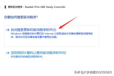 3、在更新驱动程序窗口中选择“自动搜索更新的驱动程序软件”。