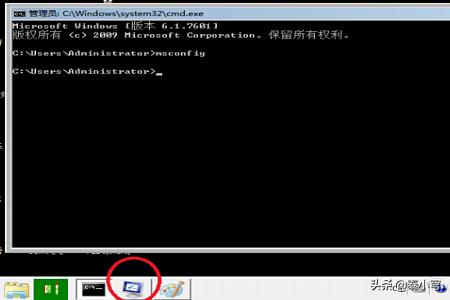 5、随后我们在cmd命令提示符输入msconfig。随后我们会看到任务栏会出现一个窗口,我们打开。