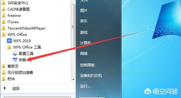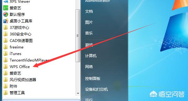 3、在所有程序里面找到需要卸载的程序WPS Office,如图所示。