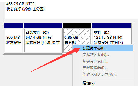 5.点击新建简单卷。