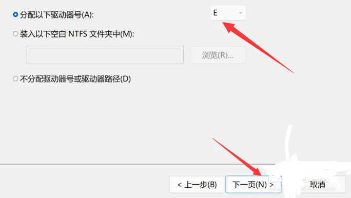 7.选择分配的盘符,点击下一步。