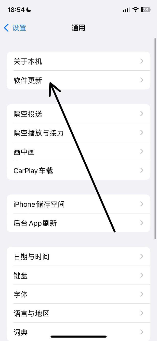 在通用设置上方点击进入软件更新。