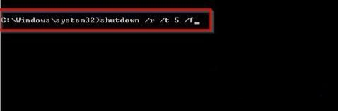 接着再去输入shutdown /r /t 5 /f,这个命令可以让电脑重启;