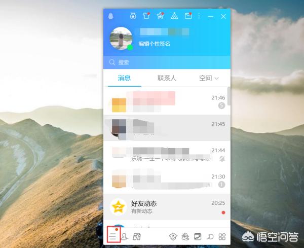 1、打开QQ界面,点击左下角的主菜单。