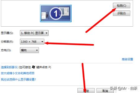 4、最后我们需要对自己的电脑进行识别和选择电脑分辨率,与此同时我们需要对电脑的分辨率检测,检测成功之后我们选择所需要的分辨率参数,点击确定就可以成功设置。