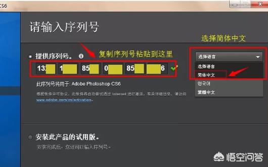 5、复制序列号粘贴到里面,然后选择简体中文。