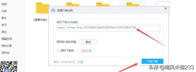 3、在弹出一个任务框中,把刚才复制好的磁力链接粘贴到框里,点击下方的“开始下载”。