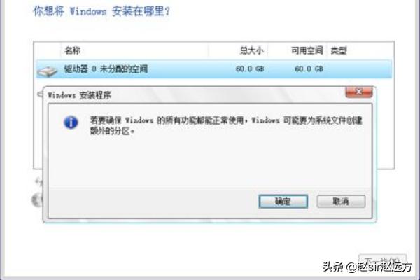 10、弹出提示框,提示会建立额外分区,直接点击确定;