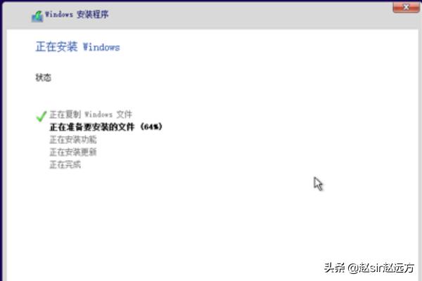13、进入到这个界面,执行win10系统文件、功能安装过程,需等待几分钟;