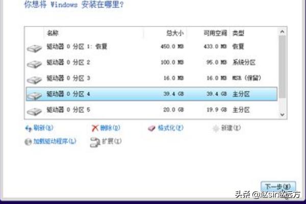 12、完成分区之后,选择系统安装位置,一般是第一个主分区,比如图中的分区4,下一步;