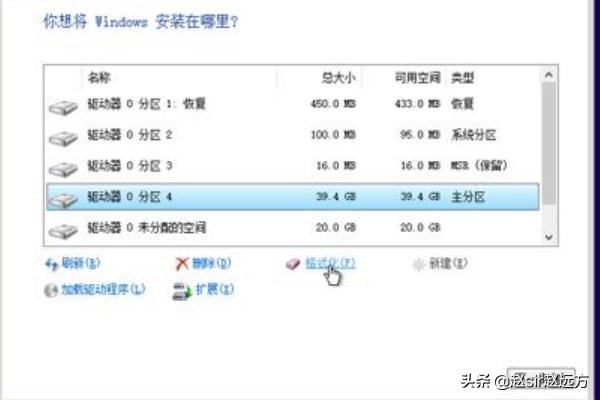 11、这边就建立了一个主分区,以及其他的额外分区,uefi模式下会有MSR保留分区,gpt分区表都会这样,选择主分区,点击格式化,然后按同样的步骤,新建其他的分区;