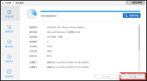 3、等待装机吧检测完成电脑安装环境后,点击下一步。
