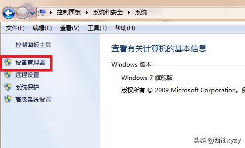 2、在出现的页面中,点击打开左边菜单选项里的“设备管理器”,如下图所示。