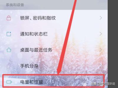 2.然后在打开的设置页面中找到 电量和性能 选项,然后点击它。