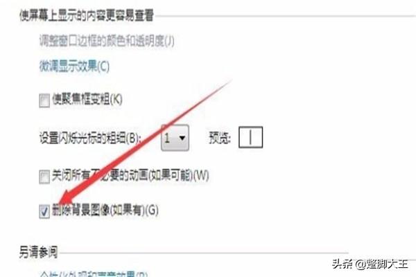 5、在新打开的窗口,我们向下拖动右侧的滚动条,可以看到一项为“删除背景图像”,把其前面的勾选去掉,最后点击确定按钮。