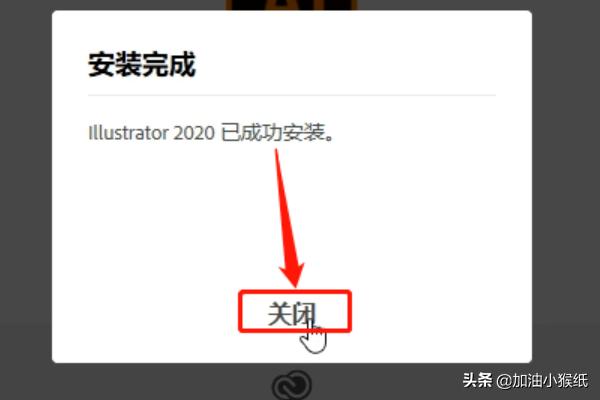 6、Adobe Illustrator 2020已成功安装,点击关闭。