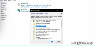 3、点击后,弹出“Windows功能”对话框,找到“Internet Explorer 11”,去掉前面的“√”。