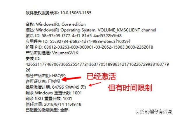3、如果有批量激活过期时间,说明win10正版授权有时间限制,到期需要激活。