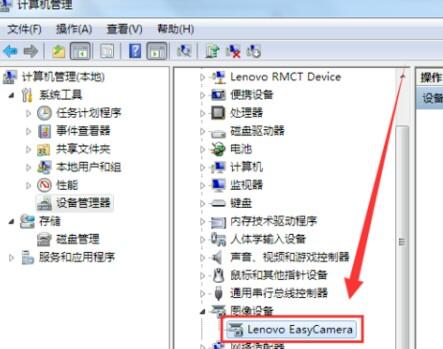 开启摄像头使用权限的方法:以windows7为例,打开“计算机管理”界面,找到【设备管理器】的【图像设备】选项,点击“EasyCamera”选项;在弹窗中,点击【启用设备】即可。