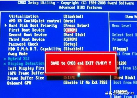 3.在CMOS设置界面中,将“第一启动”方式设置为“从光盘启动”。接着将系统光盘放入光驱中,并在CMOS界面中选择“SAVE Setting And Exit”项,此时电脑会自动重启并进行系统安装界面。