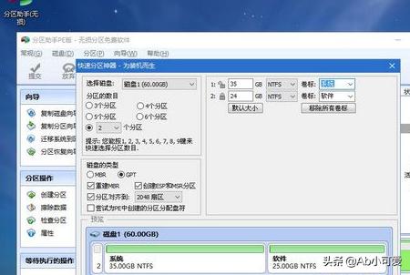 5、设置分区数目、分区大小以及分区类型,卷标为【系统】的系统盘建议50G以上,由于选择了UEFI启动,磁盘类型要选择GPT,【分区对齐到】是4k对齐,2048扇区就行,也可以4096扇区,确认无误后点击开始执行。