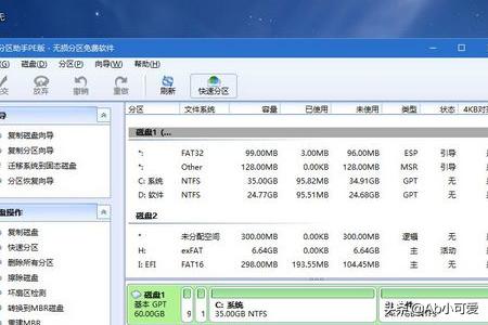 4、进入到pe之后,要在uefi下安装win10系统,硬盘需要GPT分区表,如果之前已经是预装win10机型,直接执行第7步,如果需要全盘重新分区,则双击桌面上的【分区助手(无损)】,选择磁盘1,点击【快速分区】,如果你是多个硬盘,要选对,不要误删。