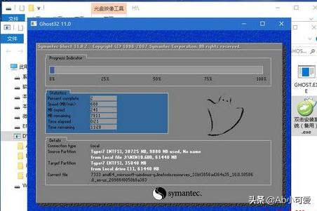 5、系统安装工具会将原版win7系统镜像包释放到所选择的分区当中