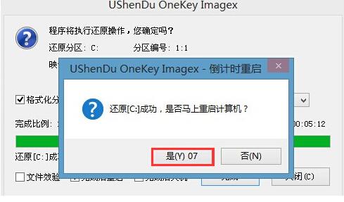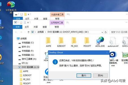 6、释放完成后所出现的提示重启窗口中可点击“是”,或者等待10秒让电脑重新启动