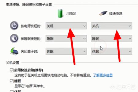 4、然后点击打开“按电源按钮时”后面的两个选项,都选择“关机”,回车确定即可。如下图所示。