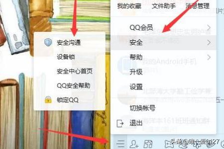 2、接下来在页面下方选择红色箭头所指处的设置,然后选择红色箭头所指处的“安全”-“安全沟通”。
