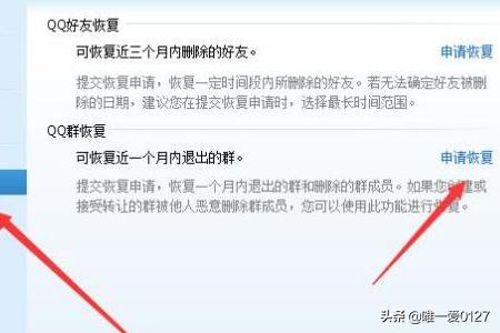 3、接下来在页面中选择红色箭头所指处的“好友恢复”,选择QQ群恢复,点击红色箭头所指处的“申请恢复”。