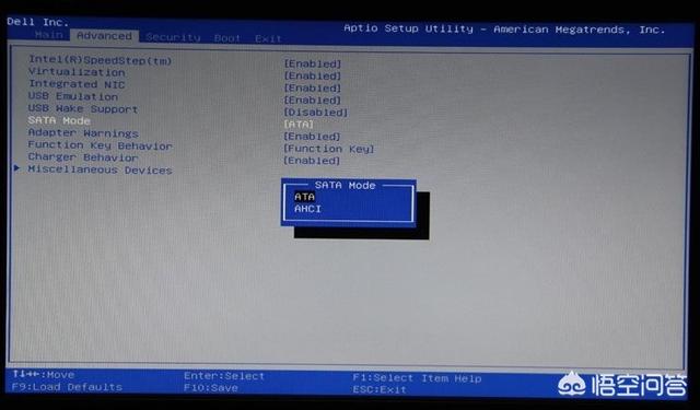 2、进入戴尔笔记本bios设置后,还需要先将这个硬盘模式更改下。通常dell笔记本默认的是AHCI模式。不过这样的模式一般装系统可能都会出现不认硬盘或者蓝屏的现象,那么为了保证万无一失,我们可以选择ATA,这个也就是我们常说的IDE模式。