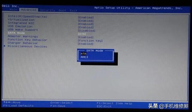 2、进入戴尔笔记本bios设置后,大家需要先将这个硬盘模式更改下。通常情况下dell笔记本默认的是AHCI模式。不过这样的模式一般装系统可能都会出现不认硬盘或者蓝屏的现象,那么为了保证万无一失,大家选择ATA,这个也就是常说的IDE模式。
