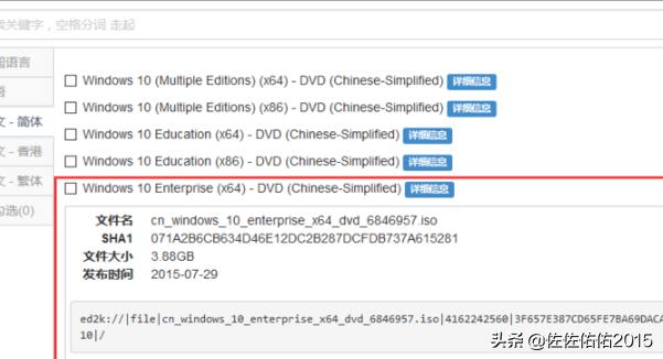 5、选择好版本后,点击对应版本右侧的“详细信息”,在出现的详细信息中,你可以看到文件名,SHA1(安全加密算法),文件大小及发布时间,当然还有个下载链接。