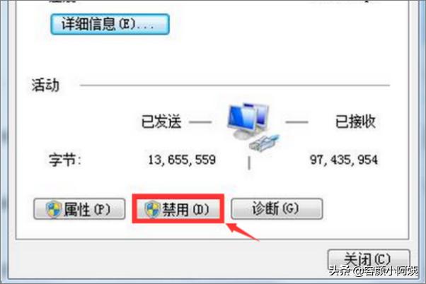 4、第三步:点击“本地连接”状态中的“禁用”按钮;