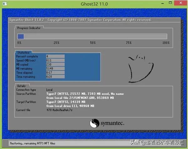 5.打开PE系统中一键恢复软件,找到下载好的windows系统文件,选择需要恢复到哪个分区,开始恢复并等待恢复完成就可以了。