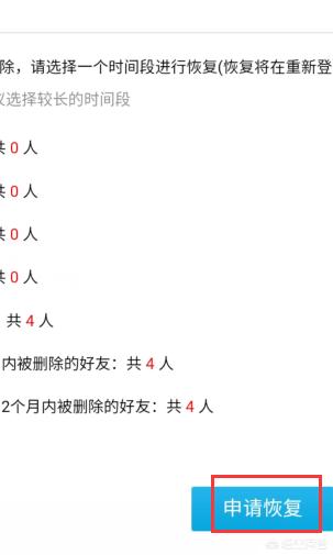 六、最后点击页面下方的“申请恢复”,等待申请通过后,这些好友就能够恢复至QQ联系人内了。