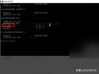 5、仔细观察,在最后输入ipconfig,键盘按下enter键。