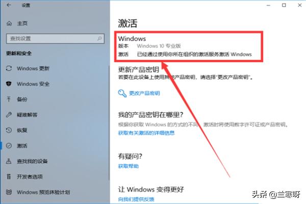 1.第一步,先确保我们电脑的系统是Windows 10 专业版。小伙伴们可以通过【设置】>【更新和安全】>【激活】进行查看。